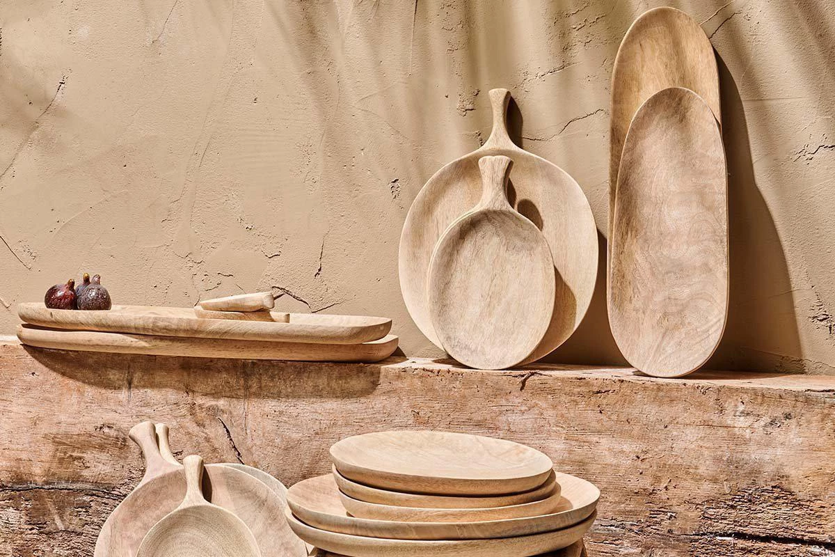 These pieces are created from sustainable mango wood. The mango trees are initially grown for their fruit, but once they have stopped producing they can be cut down and used to create wood products. This allows farmers to plant more trees and provides them with a supplementary income.