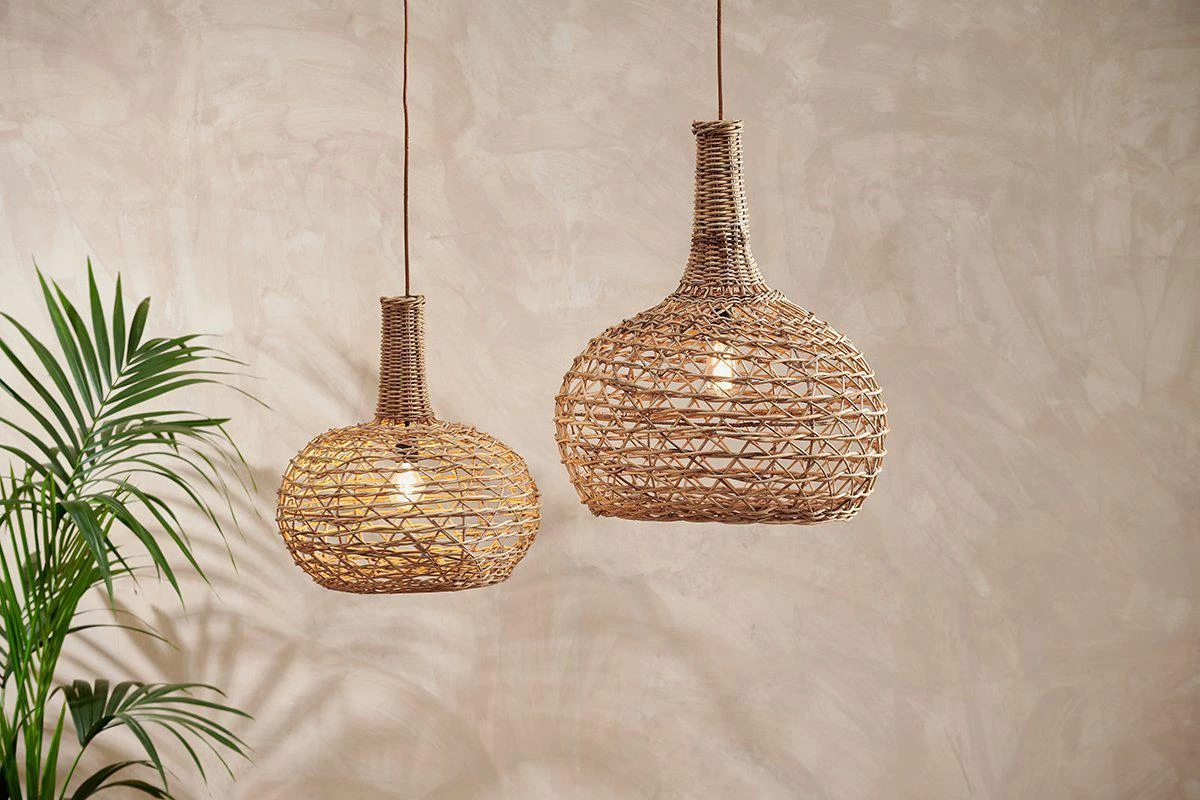 We love the curvaceous shape of these beautiful rattan pendant lights. The pattern created by the traditional basket weaving skills create an attractive lampshade