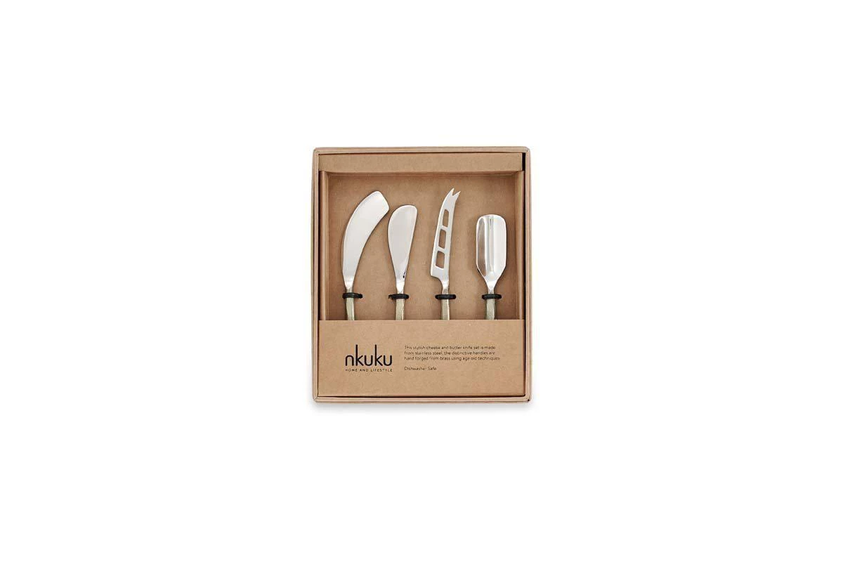 Our cheese knife sets have stainless steel tips with characterful hand forged brass handles. The set is suitable for a variety of soft and hard cheeses.