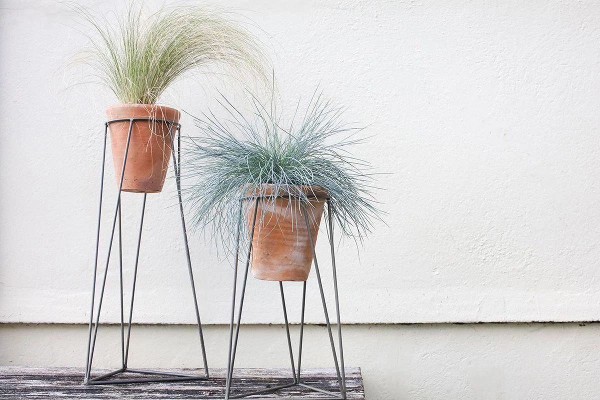 These geometric, zinc plant stands and terracotta plant pots look great styled together in a mix of both heights.