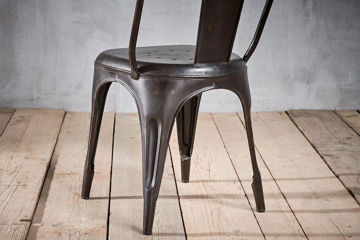 These elegant metal chairs are made from iron featuring a lovely distressed finish. The design is based on the popular Tolix chair making them perfect for a home or cafe.