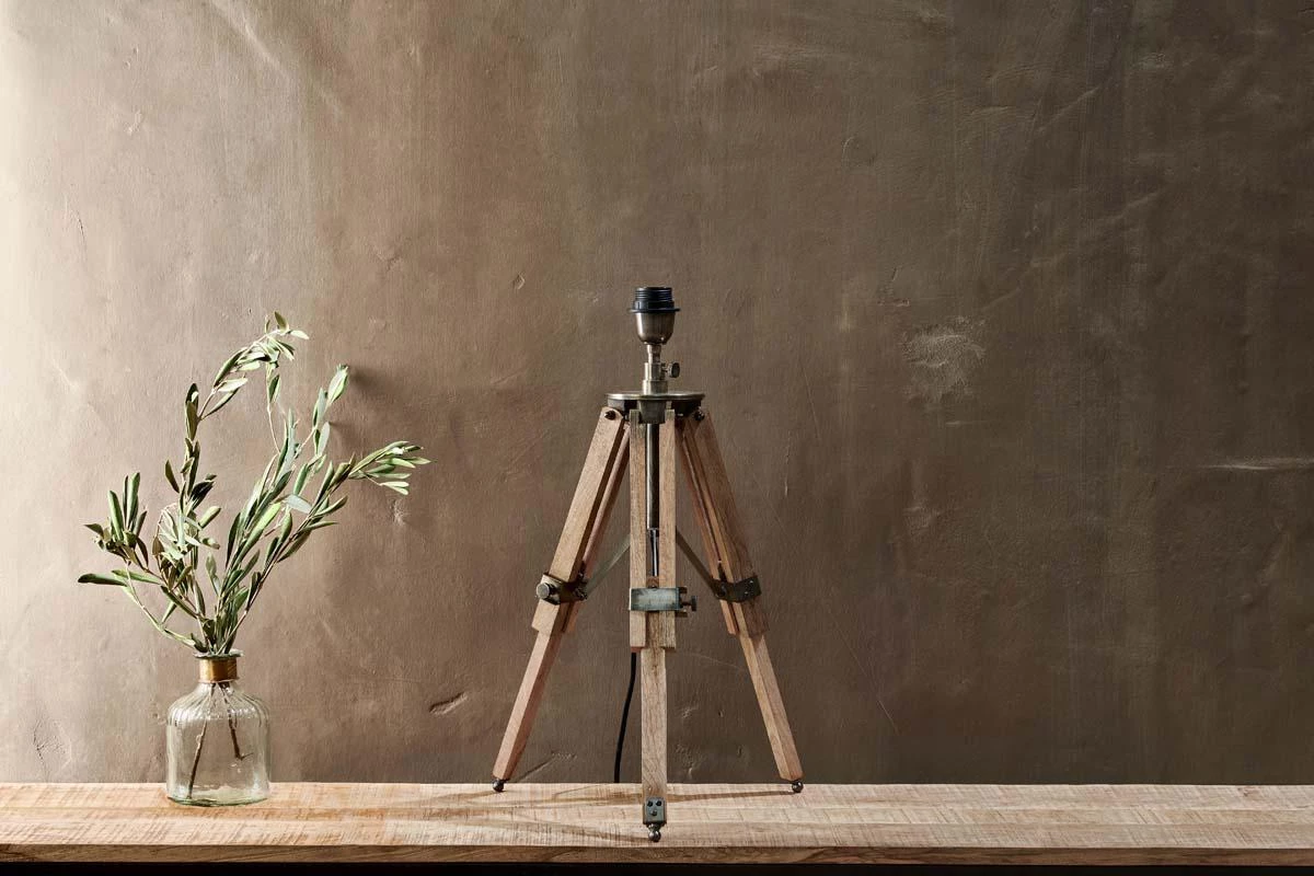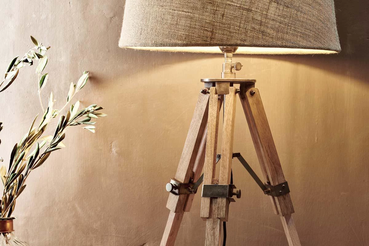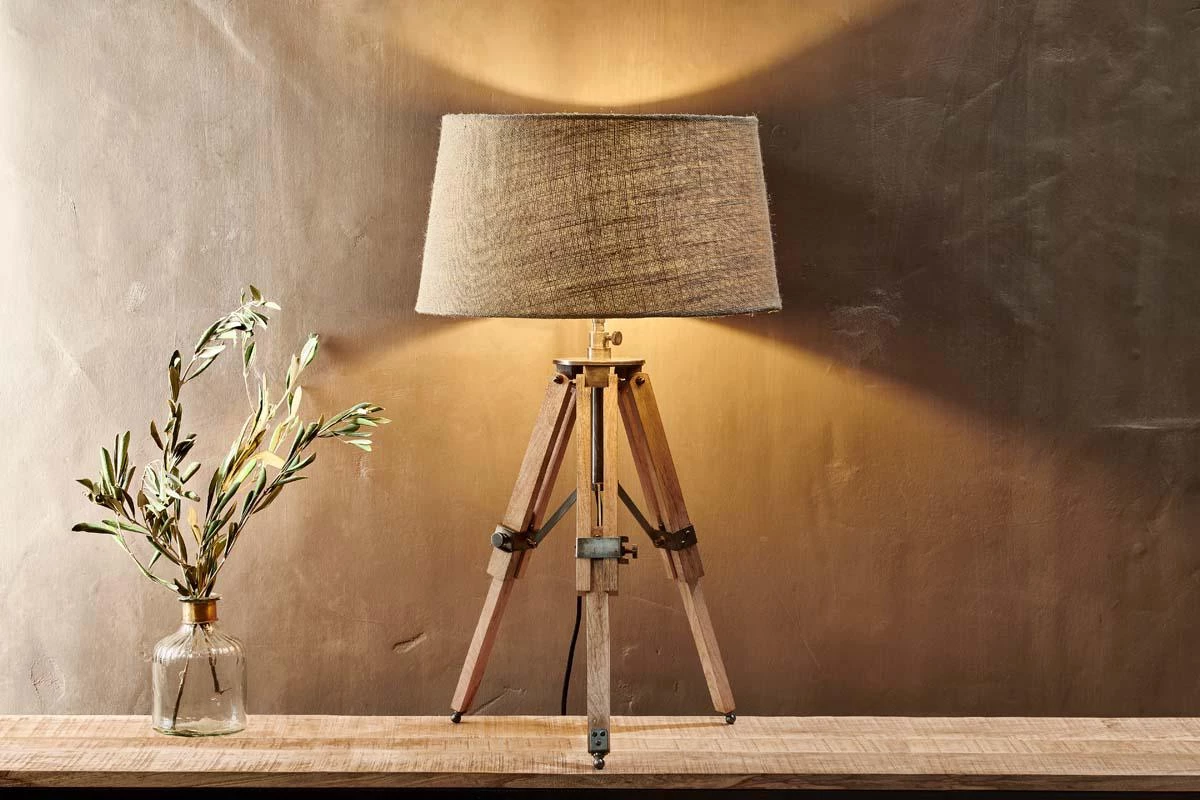 Architectural in design, our Ronga Table Lamp displays stylishly on a console or sideboard. The tripod base is constructed from sustainable mango wood and includes antique brass fixtures and fittings. As with a traditional tripod design the legs can be adjusted to the required height. Pair with our Dia jute lampshades to complete the look.