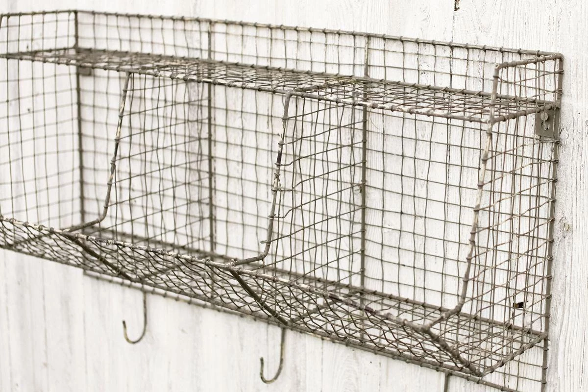 Organise your home office with this practical wire storage shelf unit. Each wall hung shelf comes with three large compartment for sorting your belongings and three practical hanging hooks.