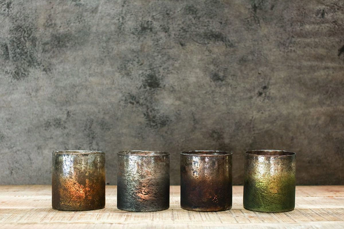 The rustic tones of these t-lights blend dark greens, blues, golds and terracotta. When the candle is lit the warmth of the rustic hues shines through.