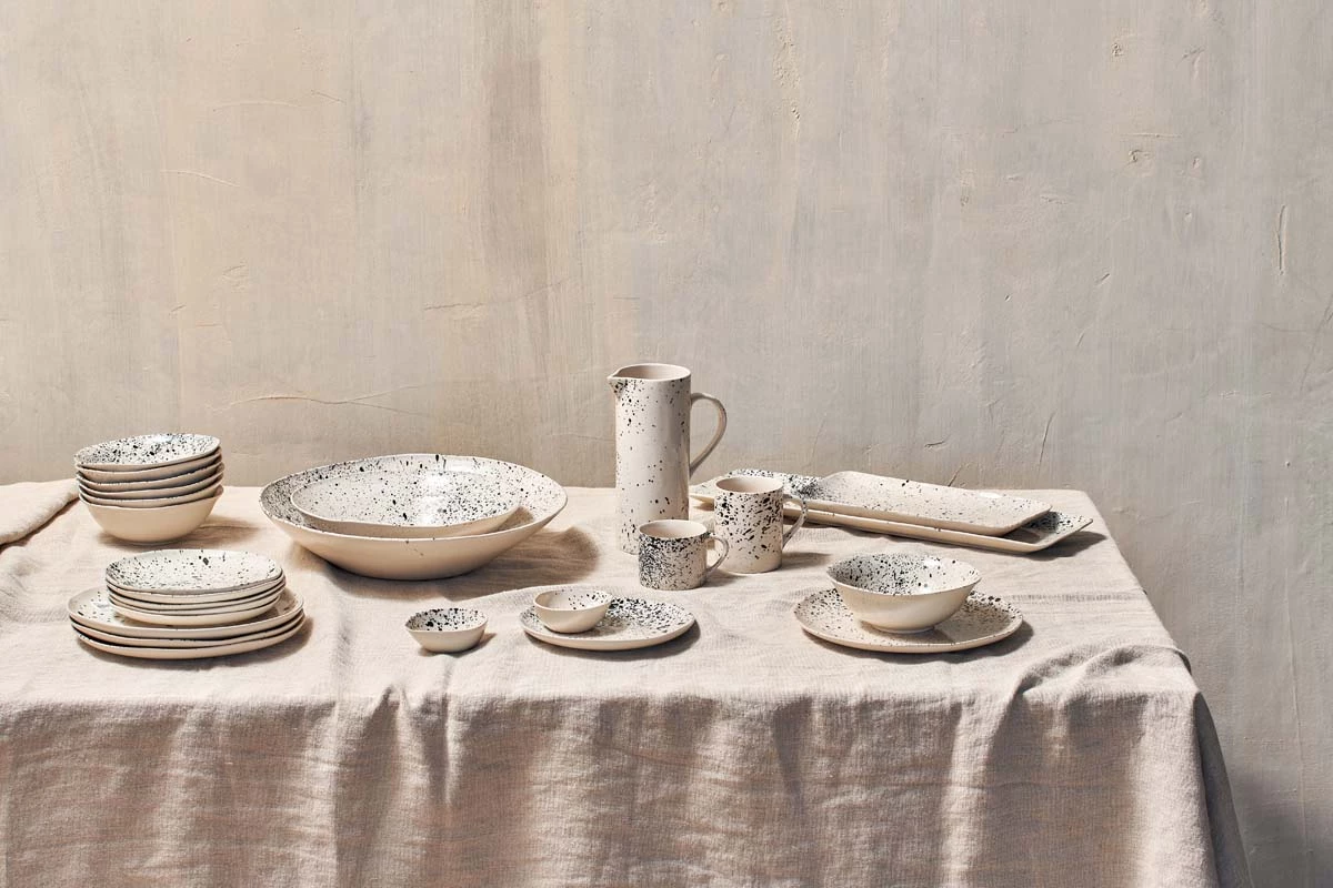 These artisans made Ama mugs are decorated with a black splatter finish. This eye-catching design is created by hand. These stylish mugs have a smooth glaze finish and tactile quality.