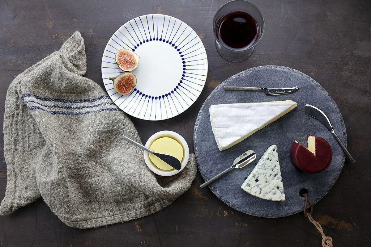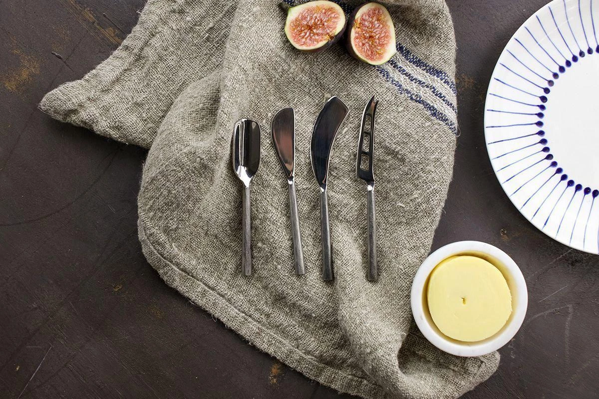Our cheese knife sets have stainless steel tips with characterful hand forged brass handles. The set is suitable for a variety of soft and hard cheeses.