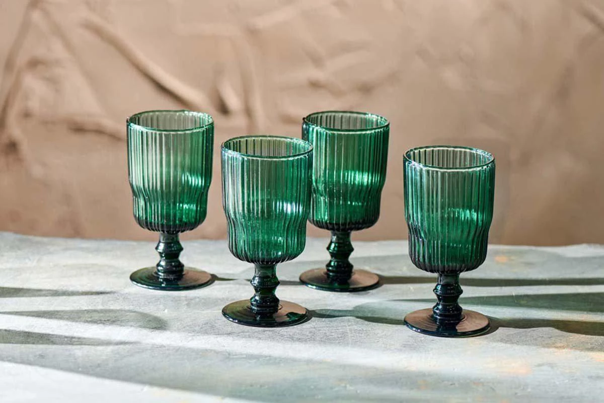 The ribbed design of our Fali wine glasses is enhanced with a deep teal hue, adding colour and style.