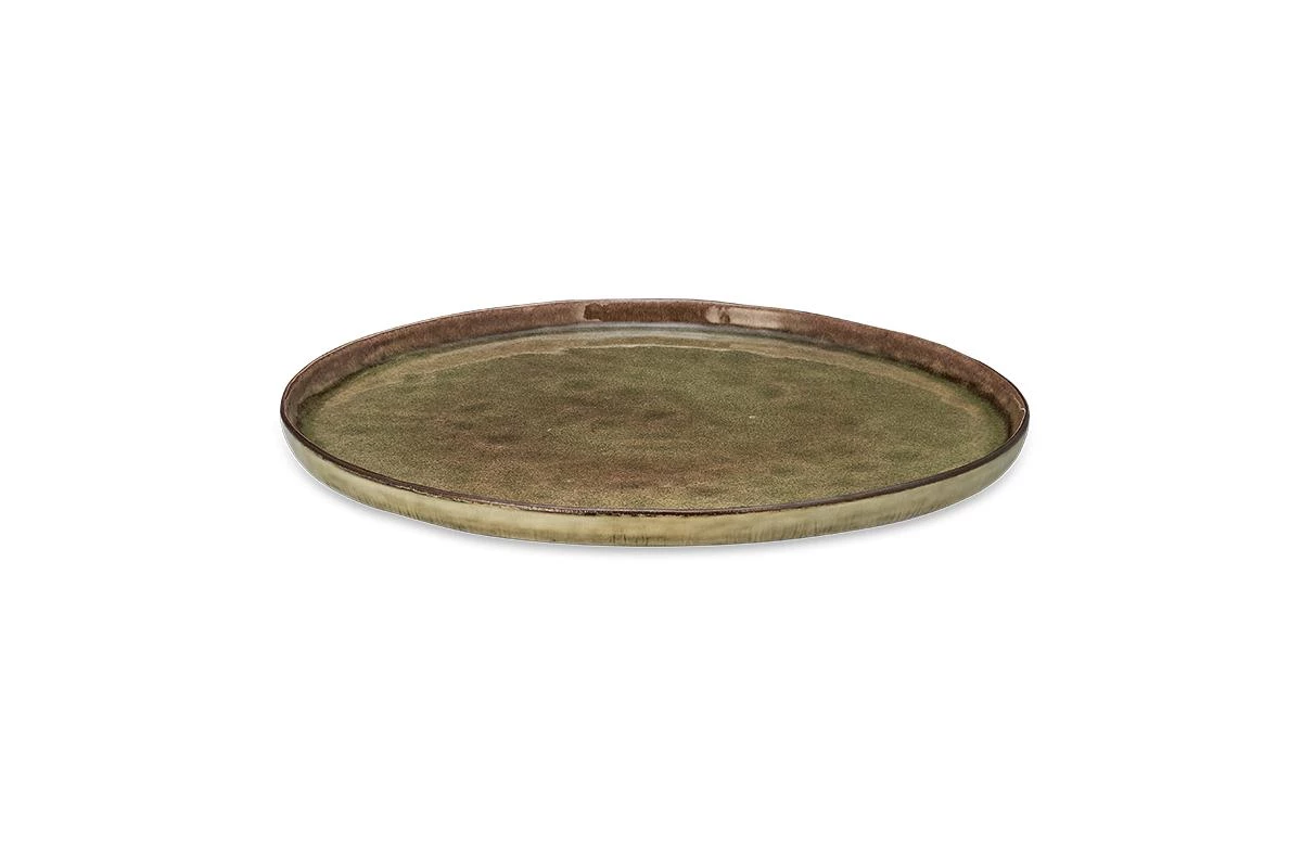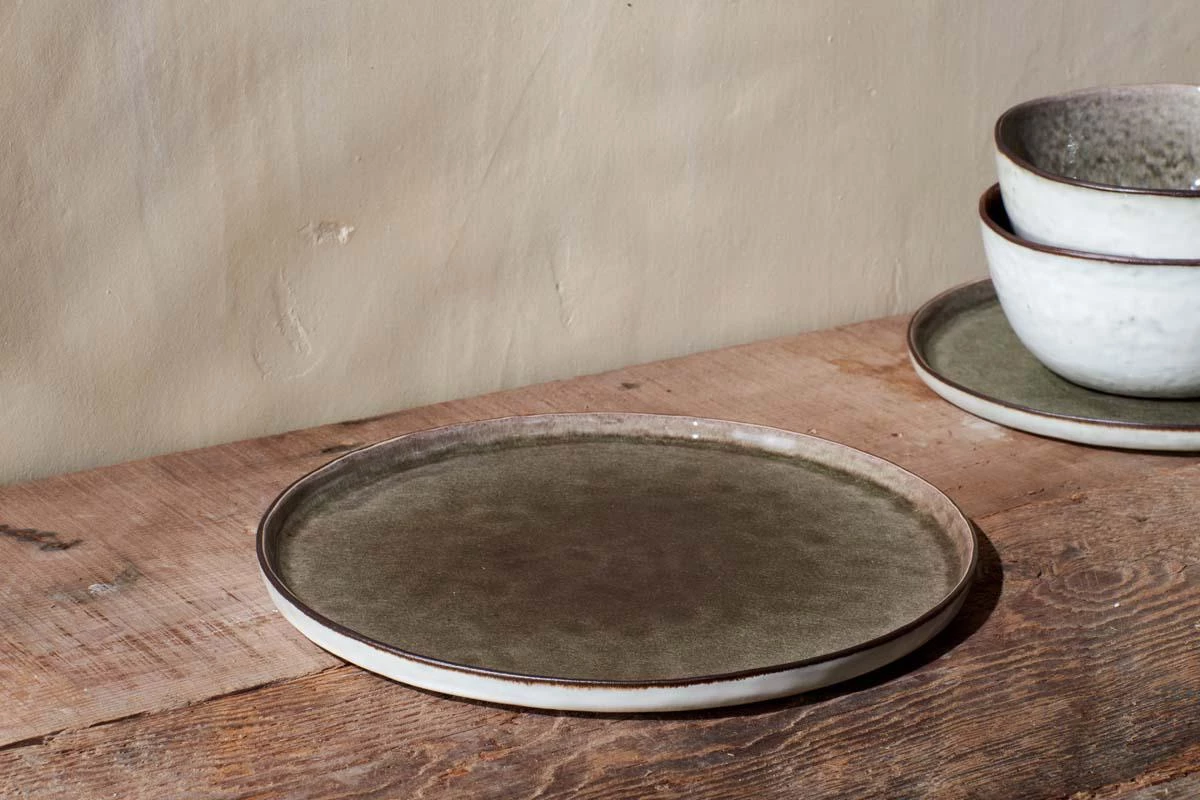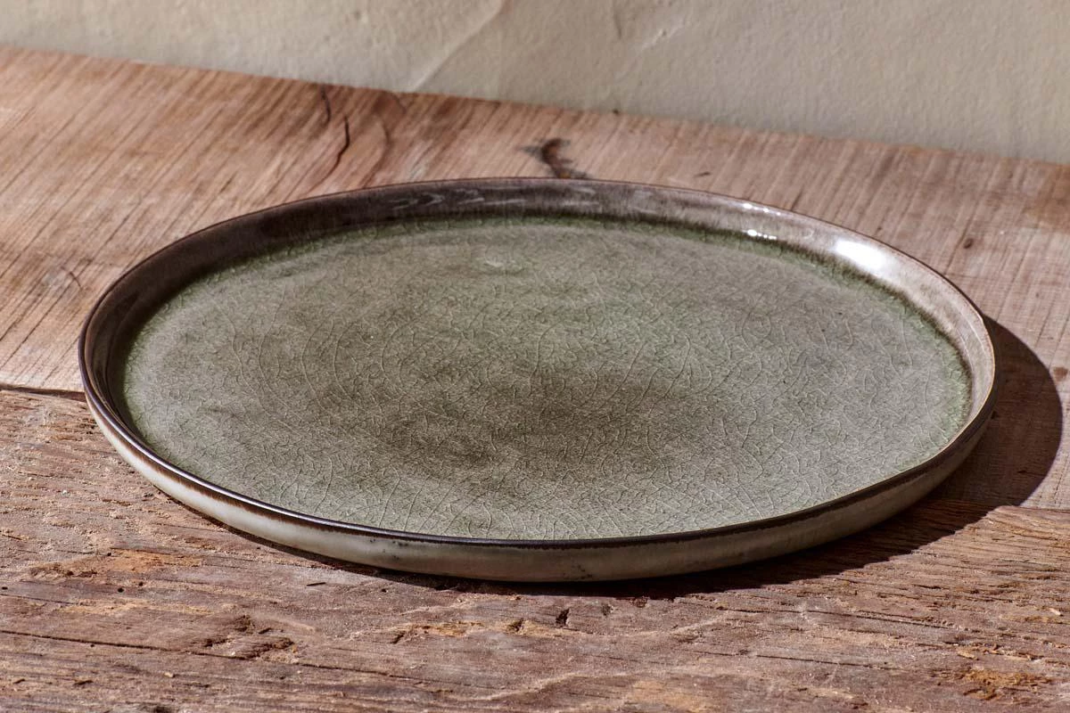 Natural, organic tones are celebrated in the appealing moss green glaze of our Simi Dinner Plate. The reactive glaze has an appealing finish; the contrasting exterior has a subtle off- white glaze, enhancing the colours within.