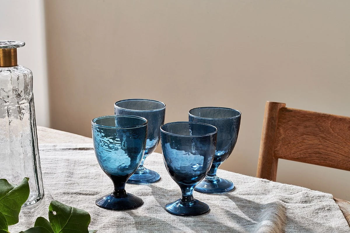 The Yala Hammered Wine Glasses are stunning! The indigo color is rich, and the hammered detail gives them a nice tactile feel. They’re a bit pricey but worth it for the quality.