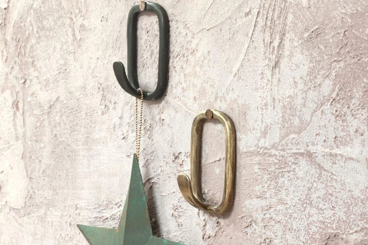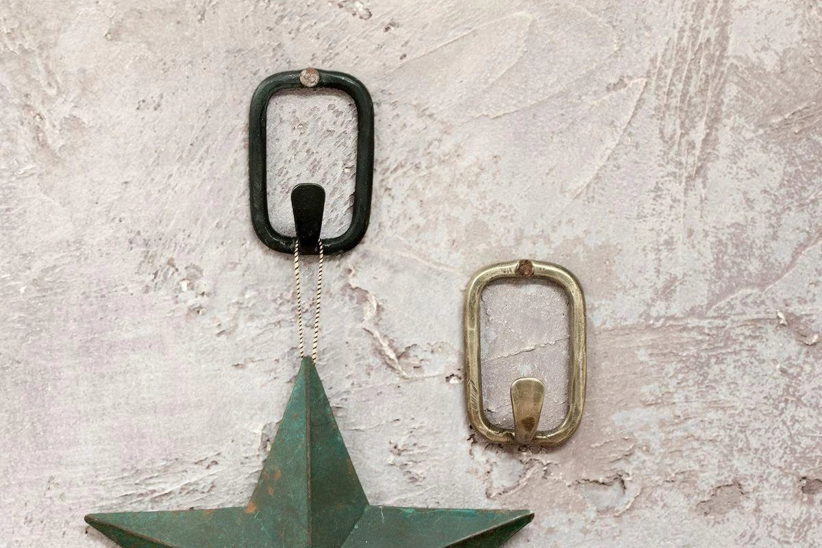 These practical iron square hooks are hand forged in an imperfect design. They are great for small storage such as holding household keys or use in a kitchen for tea towels.