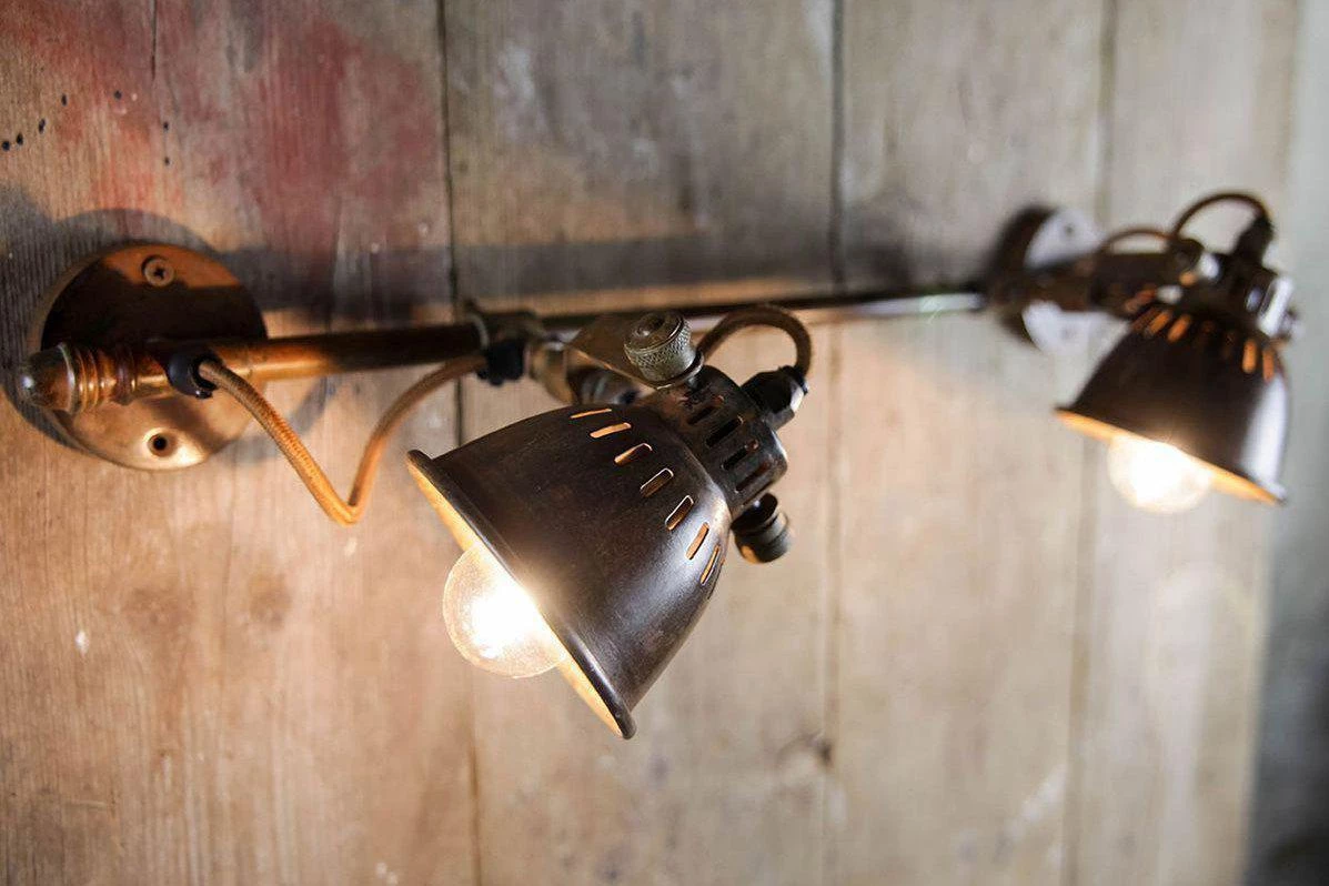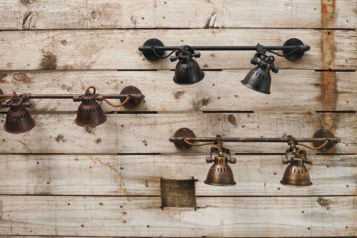 Create a vintage look with our rustic brass sliding spotlights. Each sliding light features two spotlights, with flexible joins that enable you to angle the lamps. These industrial spotlights come in a lovely rust finish.