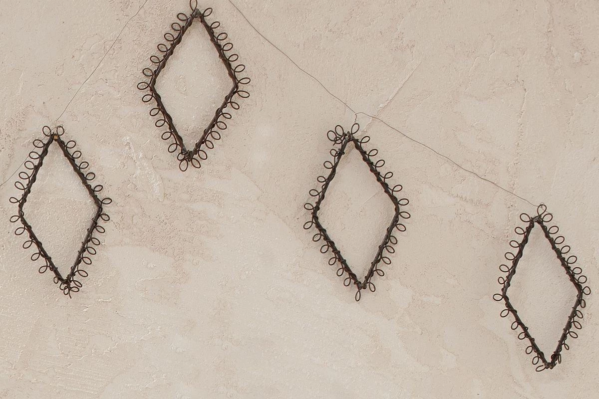 The wire garlands are dressed with either a simple star shape or diamond shape decoration in a stylish rust finish.