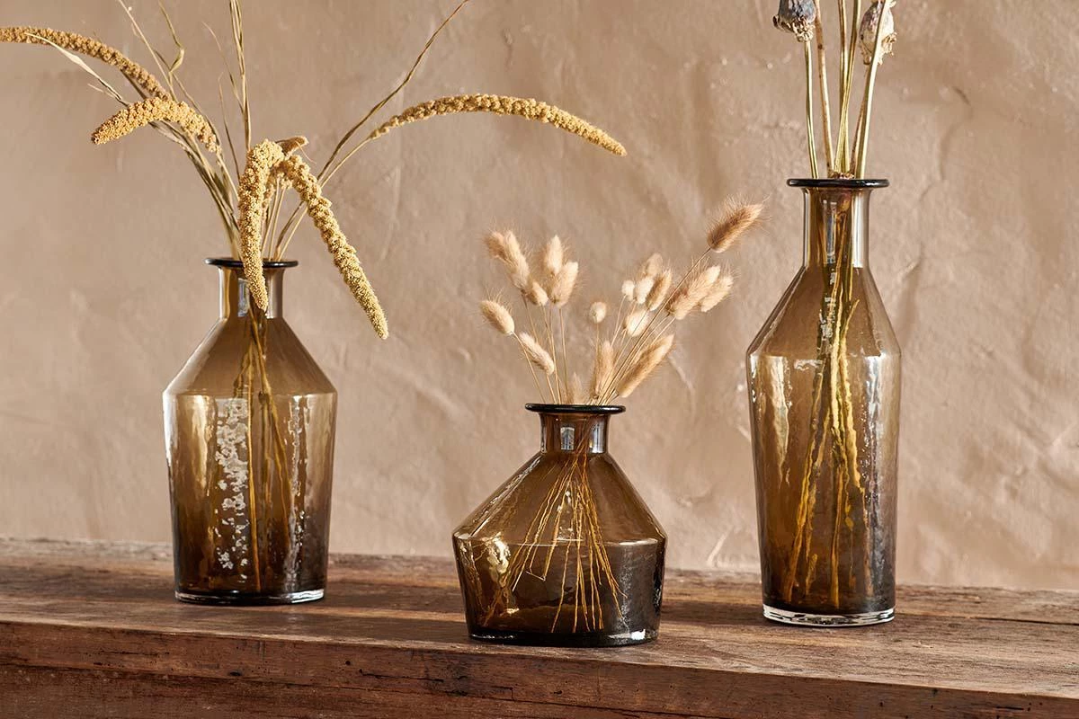 Charming and individual in feel, these attractive Zaani glass vases have asymmetric shape. Handblown into a simple mould, the irregular shape is enhanced with the subtle earthy brown tone. Style different shapes and heights together for an attractive display; fill with dried flowers, foliage or vibrant blooms.